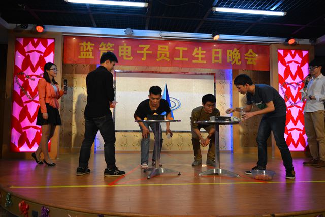 晚会上准备了“水中吹球”、“快乐传真”、“谁是卧底”、“听曲识歌”等游戏,以及小品“西游记外传”、歌曲串烧等节目。公司工会也为寿星们准备了现金抽奖红包、生日蛋糕及精美的生日小礼物。